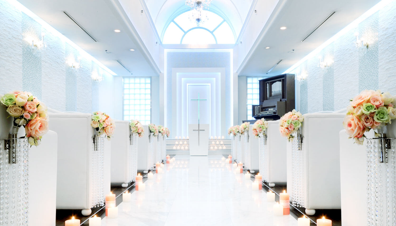 チャペルではバージンロードを装飾したり、ゲストからフラワーシャワーを受けるなど多彩な演出も可能